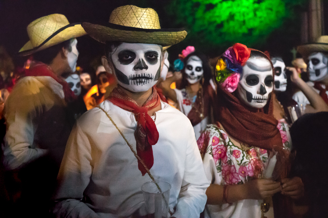You are particularly interested in capturing your subjects while they are juxtaposed against crowds of people and landscapes of graveyards. In both cases you highlight the contrast of light and shadow and how it interacts with your subjects. Though the images seem inspired by traditional documentary/portrait photography, they have some unique elements, like primarily focusing on one person in each scene. I also see that each photo tells a story about your subjects in the photos. I don’t think there is any way to look at these photos and not feel fascinated! Your photos highlight a sense of human relationship. Also, with the single people, there are ideas around celebration while moving through the crowds. With painted faces there is also personal expression and longing.